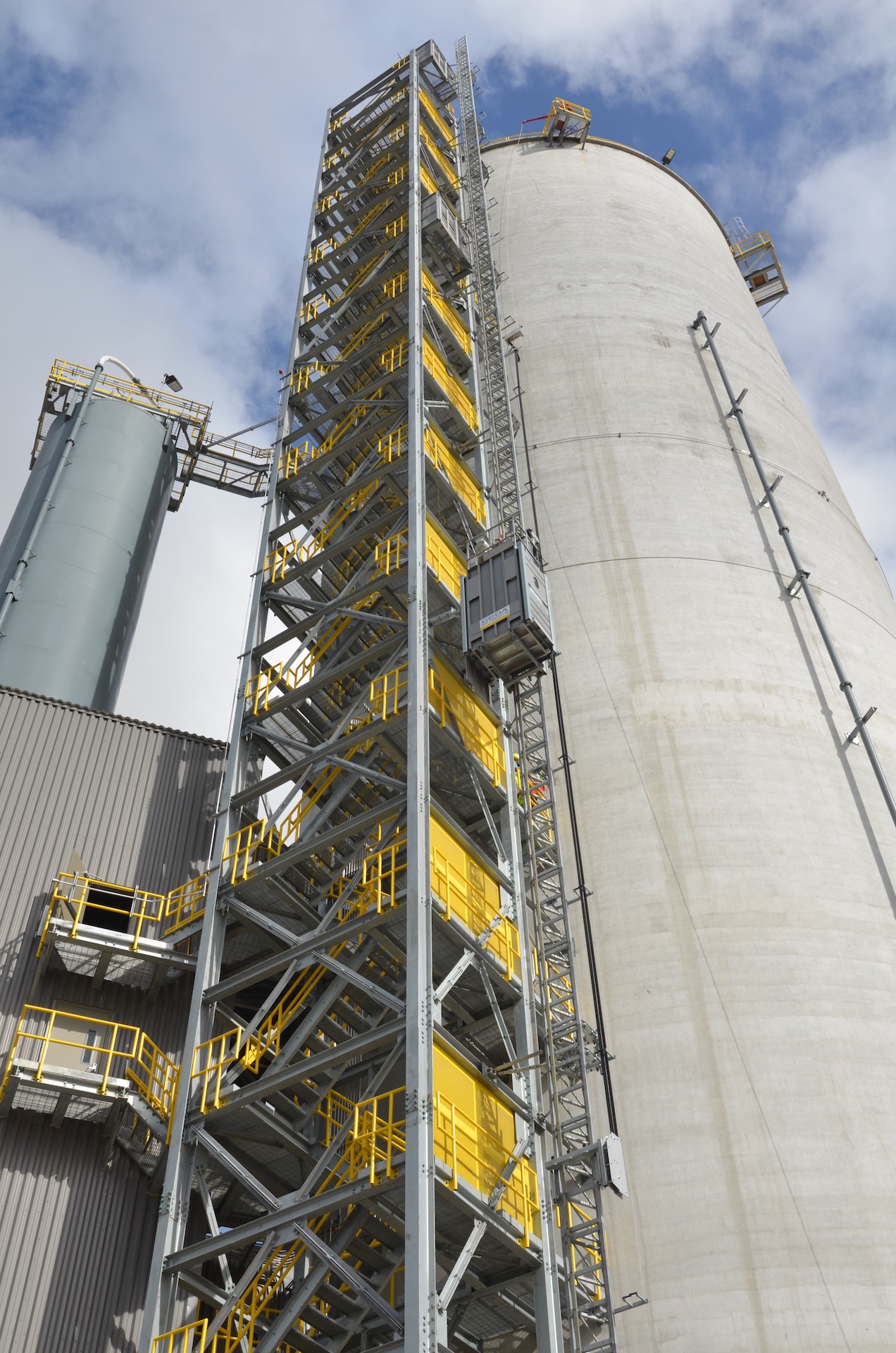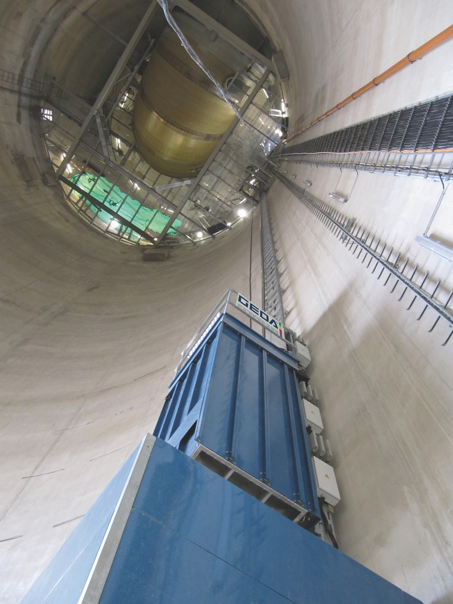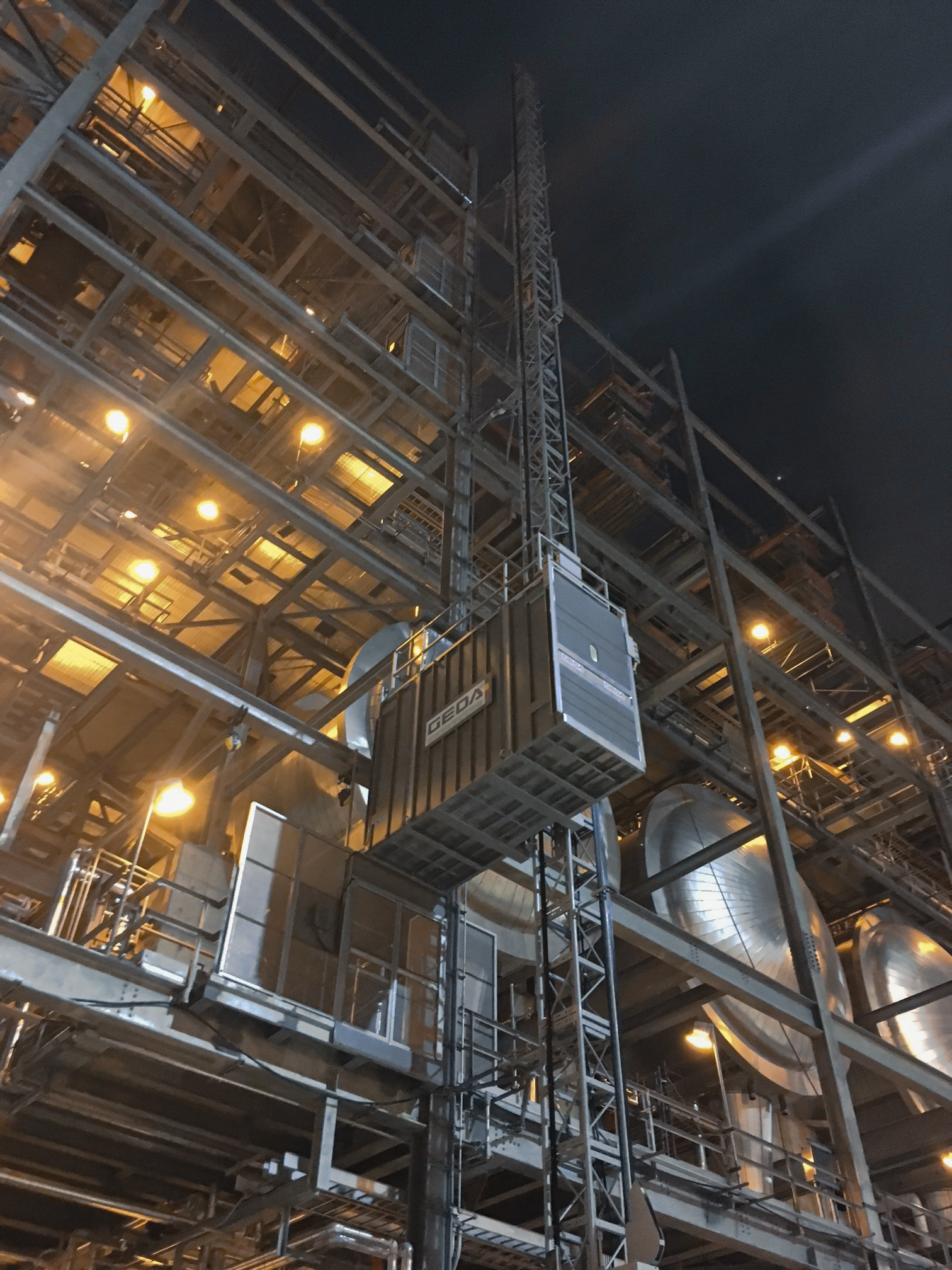 GEDA industrial elevators guarantee the smooth, efficient and safe transportation of people and materials precisely where they are required. Even in the toughest of conditions, GEDA products score highly with customers due to their unique quality and modern car design. The versatile deployment sites of GEDA industrial elevators cover cement works, asphalt mixing plants, chemical plants through cooling towers and silos to offshore plants and explosion-protected areas. Industrial elevators create huge time and cost savings due to efficient workflows in maintenance and service work. The GEDA Standard elevator range covers load capacities from 400 to 3,200 kg. The modular design also provides the customer with the choice of different car dimensions and hoisting speeds of up to 60 m/min. Special bespoke customer solutions can be created and GEDA’s state-of-the-art engineering and professional project management ensures that these are adjusted specifically to any on-site requirements. Whatever demands an elevator must meet – be it a closed car, a base enclosure enclosed on all sides, the control of all loading and unloading points, or the car and ground station – every GEDA industrial elevator, whether a transport platform or personnel and material hoist or pure material hoist, can be perfectly adapted to on-site conditions.